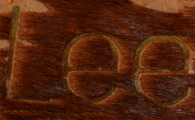 ・HAIR ON HIDEに細みの字体(カウボーイの焼印を真似た)