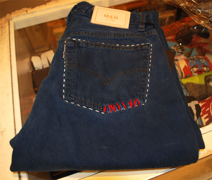 バックポケットにはハンドメイドで刺繍が施されています。