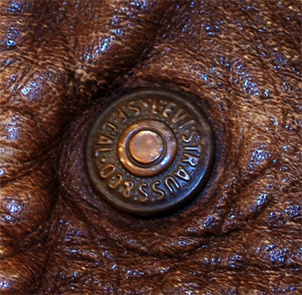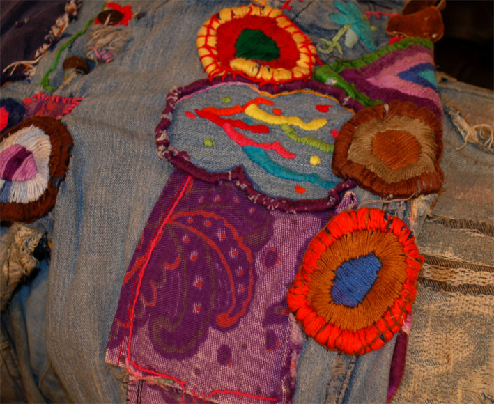 バックポケットにはハンドメイドで刺繍が施されています。