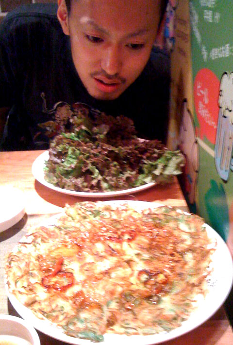 チヂミと豚肉で腹パンパンで